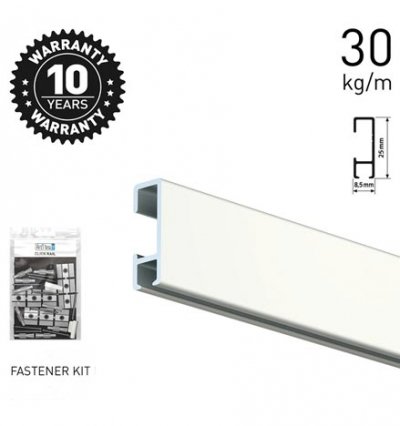 The Artiteq Click Rail is designed in a way that you can hang on each meter of rail up to 30Kg of pictures, photos, artworks, etc.