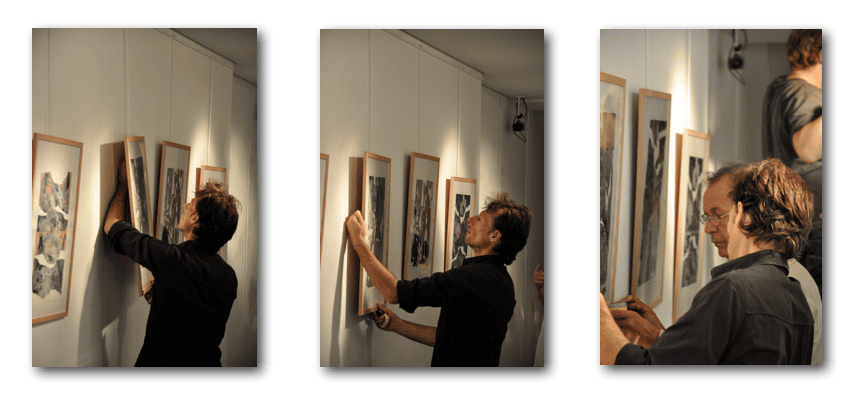 Forpiecesof the same size it really works to have them hang at the same height. Here the experts answer ablsolutely is: “Throw away your nails and install a hanging system.”