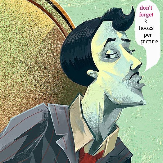 It’s easiest to use two hooks per picture or artwork.