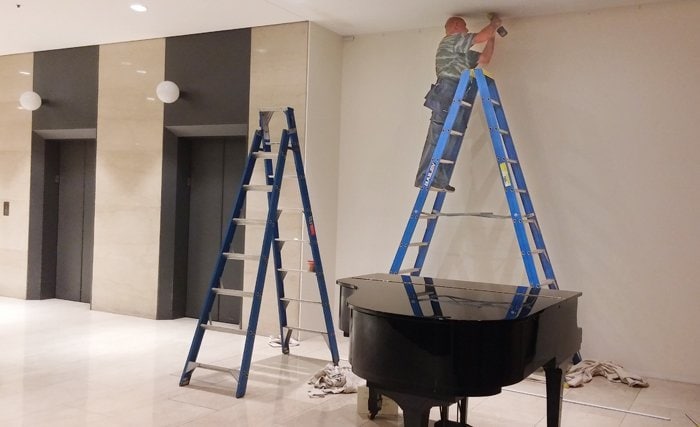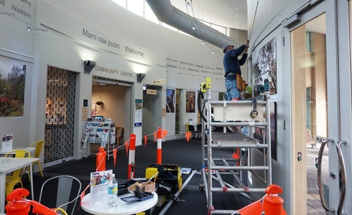 Our biggest project: 250 metres of art track for the magnificently restored historic buildings of the Town of Gawler. We used a 360-degree smart-line laser and a mobile scaffolding to maximise our efficiency.