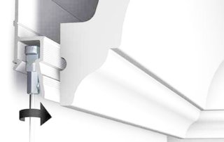 These aluminum extrusions can be wall-attached or ceiling-attached. One side of the rail is used to fix it to the building element (wall, beam, concrete ceiling, etc.). The profile has a specific cavity/surface where either a 10mm or a 13mm plasterboard sheet can be inserted or fixed on. That way, all you will notice once installed is a thin (4mm) cavity riding along the area where the wall and the ceilings join. Both hanging wires and hooks can be used the same way you would with any other hanging rail, so the flexibility and practicality of the system is still the same. Only (big) difference is that the rail is completely hidden behind the plaster. Genius!