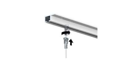 The hanging wires are simply inserted into the rail, with which they solidly engage. The hanging wires can be then sled at any time along the entire length of the rail.